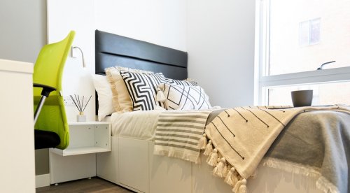 The site has CCTV and high-levels of security (with secure door entry and bike storage), and the communal areas include an on-site gym, a fine dining kitchen, common room to relax in, and a games room to challenge your new friends!